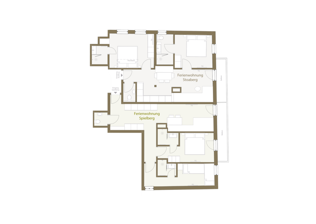 Die Ferienwohnung „Spielberg“ ist ideal für Familien, die Wert auf Gemütlichkeit und Komfort legen, und bietet zwei Schlafzimmer.